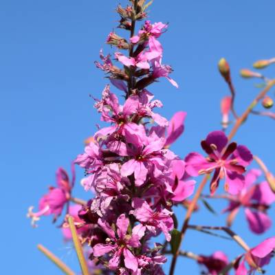 Plante vivace herbacée de la famille des Lythracées, très reconnaissable à ses hautes tiges dressées garnies d’épis de fleurs pourpres à roses. Elle affectionne les zones humides : berges d’étangs, rivières, fossés, prairies marécageuses.